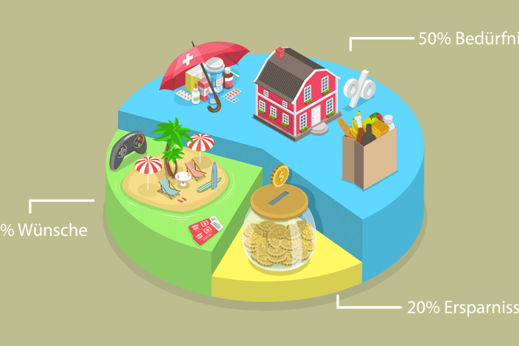 Die 50 30 20 Regel ist eine klar strukturierte Budgetierungsstrategie. Sie unterteilt unser Einkommen in drei wesentliche Kategorien. Dabei fokussieren wir uns auf die folgenden Prozentsätze: