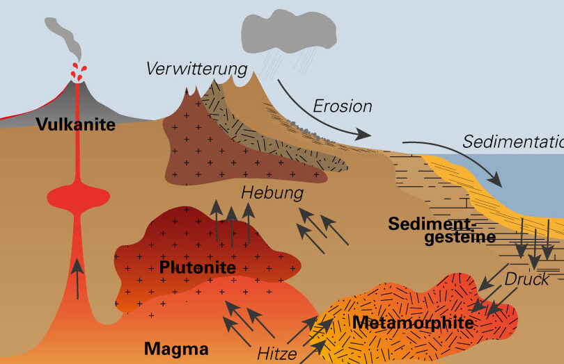 - Diagenese: Der Übergang vom lockeren Material zum festen Gestein aufgrund physiochemischer Veränderungen.