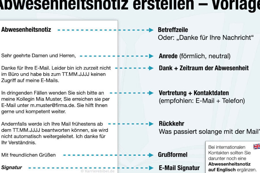 Eine gut formulierte Abwesenheitsnotiz Vorlage kann den Unterschied zwischen einem professionellen und einem unprofessionellen Auftritt ausmachen. Wenn wir in einer geschäftigen Welt arbeiten ist es unerlässlich dass unsere Kommunikation klar und effektiv bleibt auch wenn wir nicht erreichbar sind. In diesem Artikel zeigen wir Ihnen wie Sie eine ansprechende und informative Abwesenheitsnotiz erstellen können die Ihren Kontakten zeigt dass Sie ihre Nachrichten ernst nehmen.