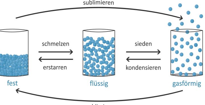 Der Übergang zwischen diesen Aggregatzuständen geschieht durch verschiedene physikalische Prozesse:
