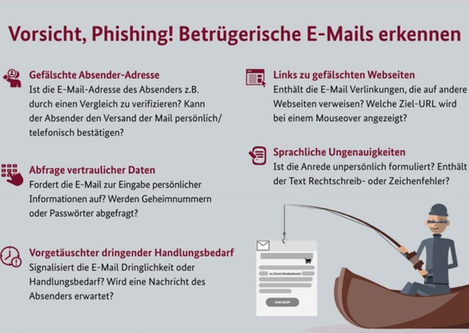 Beachten wir die typischen Merkmale verdächtiger E-Mails. Diese Punkte helfen, eine Gefahrenquelle zu identifizieren: