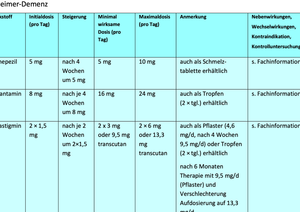 | Aricept | Donepezil | Milde bis moderate Alzheimer-Krankheit |