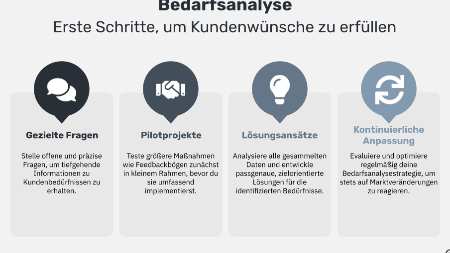 Letztendlich müssen wir flexibel bleiben und bereit sein, verschiedene Ansätze auszuprobieren sowie diese kontinuierlich anzupassen. Indem wir ein breites Spektrum an Methoden nutzen, maximieren wir unsere Chancen auf eine effektive Bedarfsermittlung und damit verbunden präzisere Bedarfsermittlung Fragen.