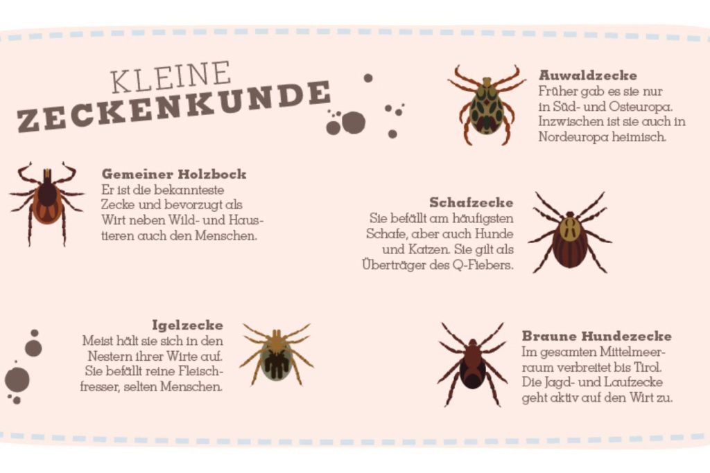 - FSME (Frühsommer-Meningoenzephalitis): Das FSME-Virus wird vor allem durch den gemeinen Holzbock übertragen. Symptome sind Fieber, Kopfschmerzen und in schweren Fällen neurologische Störungen. Eine Impfung bietet Schutz.