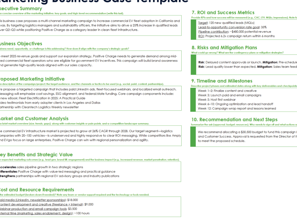 - Risikoanalyse: Die Identifizierung möglicher Risiken sowie Strategien zur Risikominderung sollte ebenfalls Teil unseres Business Cases sein. Dies vermittelt Vertrauen in unsere Planung.