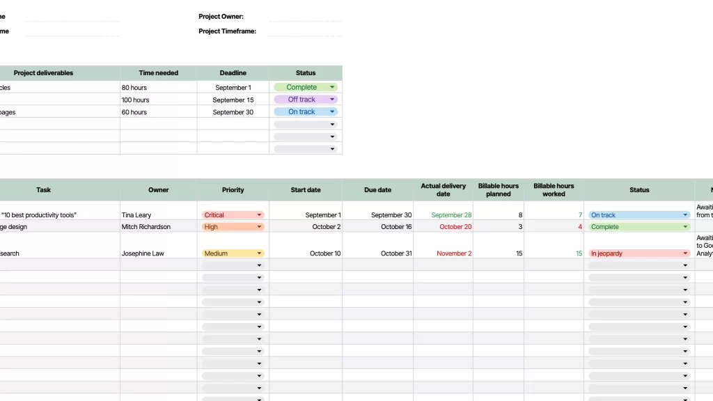 Für das Management von Projekten sind Projektmanagement-Vorlagen besonders nützlich. Sie unterstützen uns dabei, den Überblick über Aufgaben und Deadlines zu behalten. Wichtige Elemente solcher Vorlagen umfassen: