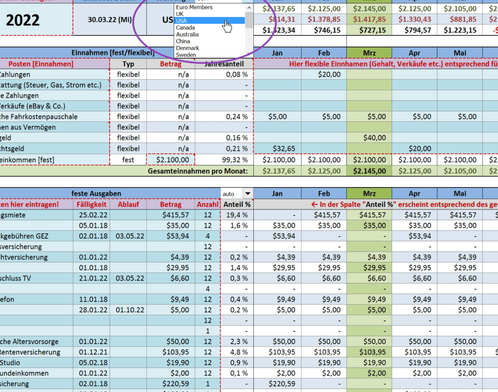 Diese Ausgaben sind im Gegensatz zu variablen Kosten konstant und verändern sich nicht von Monat zu Monat. Daher ist es wichtig, dass wir eine detaillierte Übersicht über diese Posten führen.