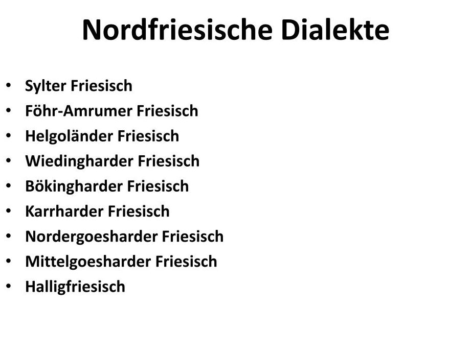 Diese Einflüsse haben dazu beigetragen, dass sich mehrere Dialekte innerhalb der friesisch sprache herausgebildet haben, darunter Westfriesisch, Ostfriesisch und Nordfriesisch.