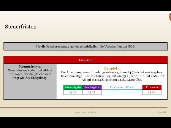 - Verlängerungsfristen: In bestimmten Fällen können Fristen auf Antrag verlängert werden, was zusätzliche Überlegungen zur korrekten Berechnung erfordert.