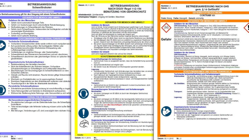 - Technische Maßnahmen: Installation von Sicherheitsvorrichtungen an Maschinen.