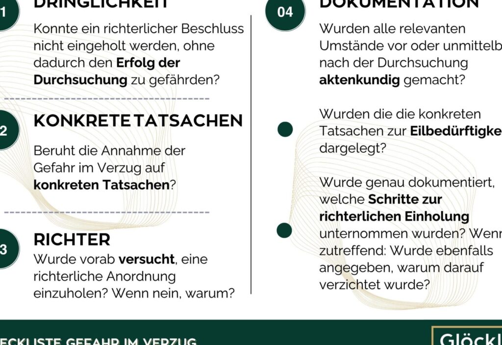 Faktoren für die Feststellung von Gefahr im Verzug