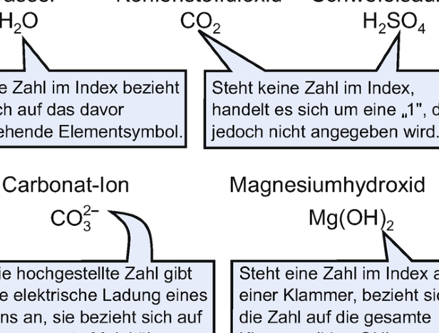 Der Einsatz des Index Chemie zeigt sich besonders deutlich in verschiedenen Bereichen der anorganischen Chemie: