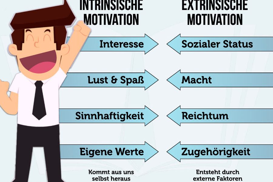 - Extrinsische Motivation: Sie beruht auf äußeren Faktoren wie Belohnungen, Anerkennung oder Druck von außen. Ein Beispiel hierfür ist, wenn wir für gute Leistungen in der Schule Preise oder Lob erhalten.
