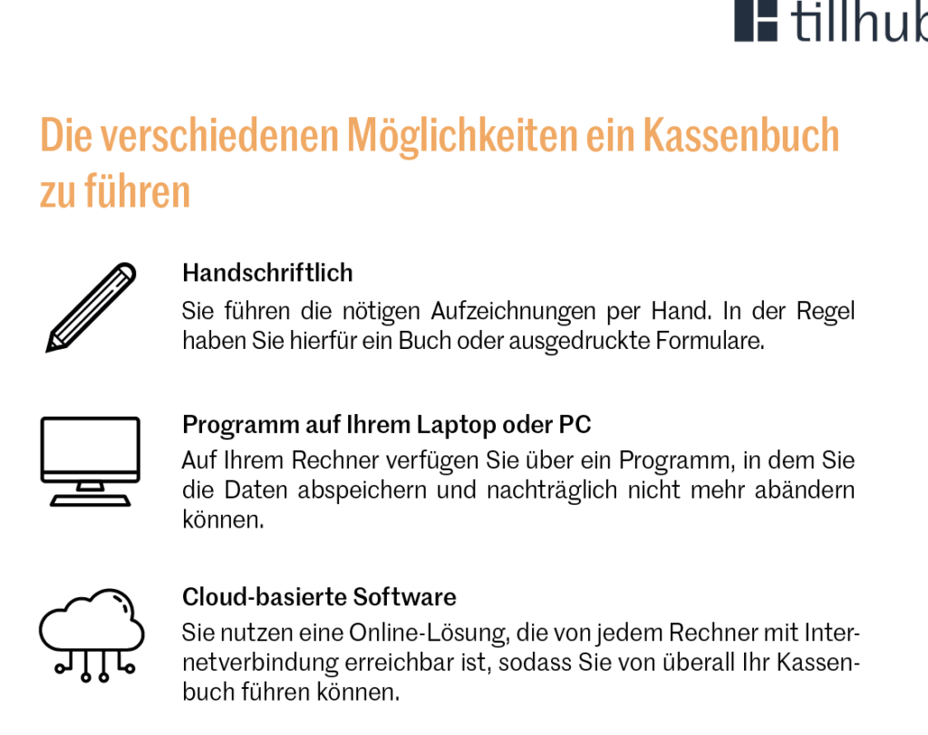 Es gibt verschiedene Möglichkeiten, ein Kassenbuch zu führen. Wir können uns entscheiden zwischen: