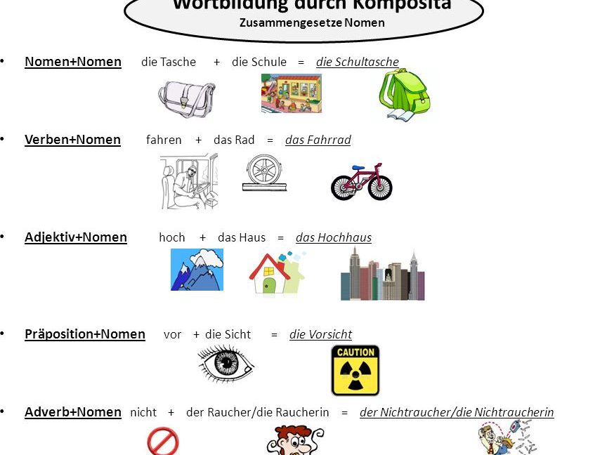Zusammengesetzte Nomen entstehen durch die Verbindung zweier oder mehrerer Nomen. Diese Art der Wortbildung liefert präzise Bezeichnungen für Objekte oder Konzepte. Beispiele umfassen: