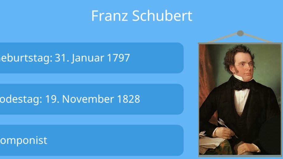 - Franz Schubert: Oft als Vater des Kunstliedes bezeichnet, hat Schubert mehr als 600 Lieder geschaffen, darunter viele Meisterwerke wie „Die schöne Müllerin“ und „Winterreise“. Seine Fähigkeit, Musik mit dem Text zu verbinden, ist unübertroffen.