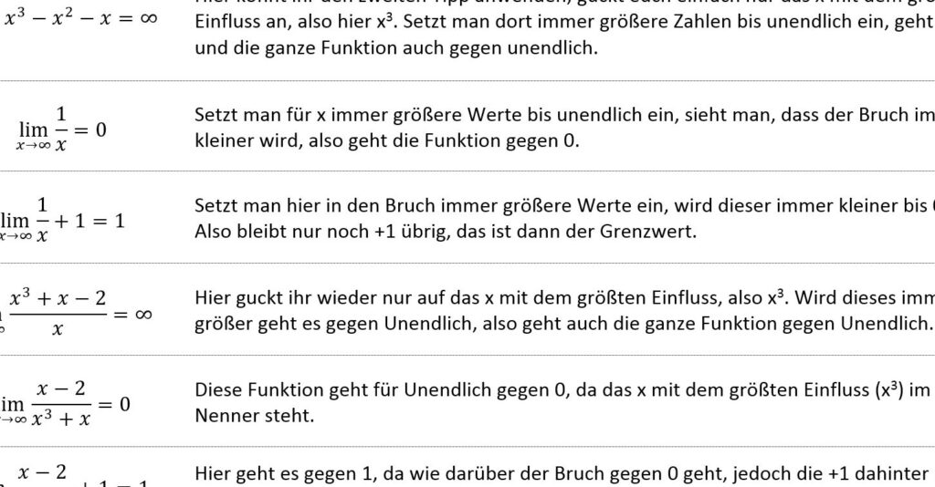 Insgesamt ermöglicht uns die Untersuchung von Limites ein tieferes Verständnis für das Verhalten von Funktionen und deren Eigenschaften im Unendlichen sowie bei speziellen Punkten.