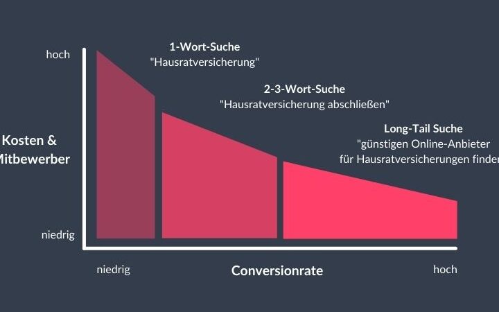Darüber hinaus führt eine gezielte Ansprache über Longtail-Keywords häufig zu höheren Conversion-Raten. Nutzer, die spezifische Suchanfragen stellen, befinden sich oft bereits weiter im Kaufprozess und sind eher bereit, eine Entscheidung zu treffen. Das bedeutet für uns: weniger Streuverluste und höhere Erfolgschancen bei unseren Marketingmaßnahmen.