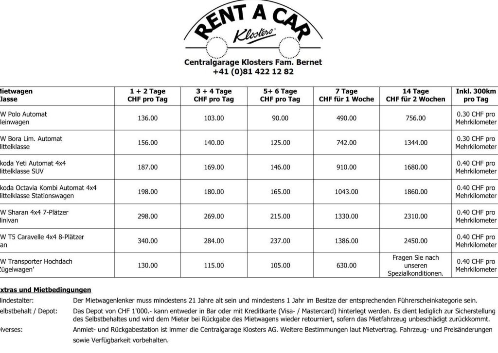 Mietwagenklasse 8 Beispiele
