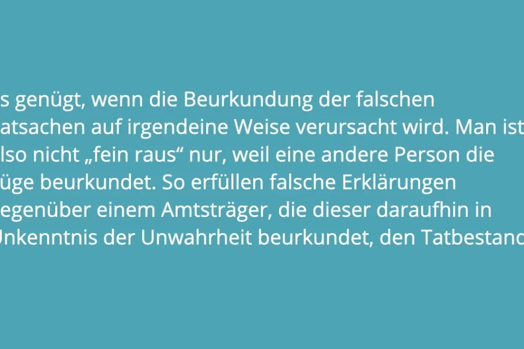 Folgendes ist bei der mittelbaren Falschbeurkundung zu beachten: