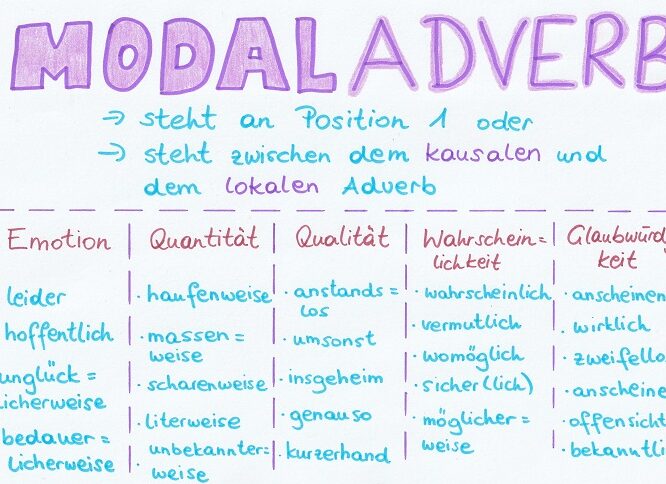 Die Fähigkeit, modaladverbiale korrekt anzuwenden, ist also ein Zeichen von sprachlicher Kompetenz und fördert zudem das Verständnis zwischen den Gesprächspartnern erheblich.