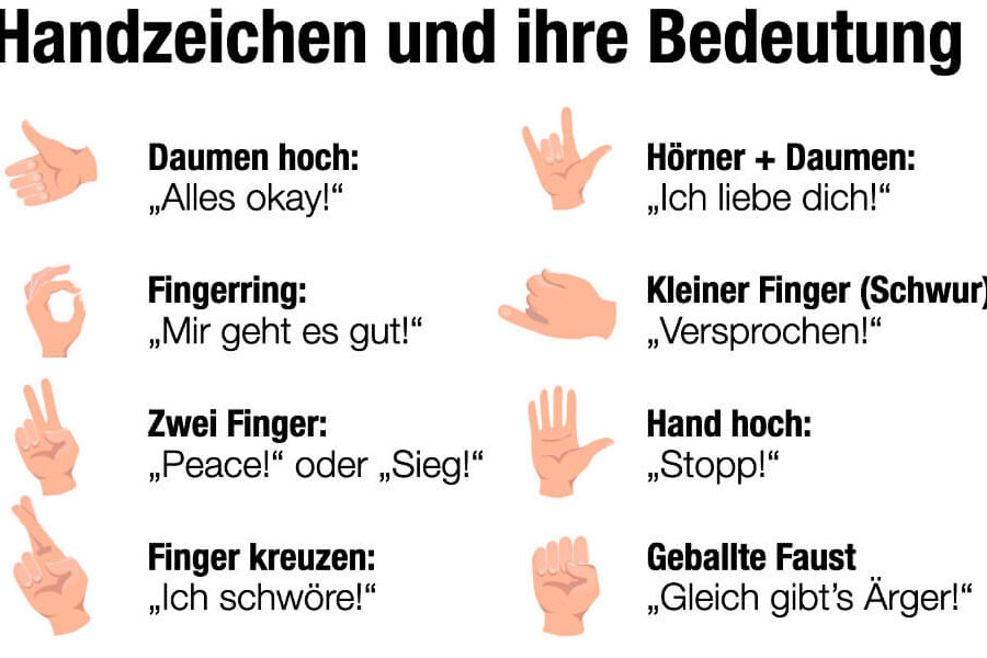 - Daumen hoch: In den USA wird diese Geste als positives Signal angesehen; jedoch kann sie in Ländern wie dem Iran als beleidigend betrachtet werden.