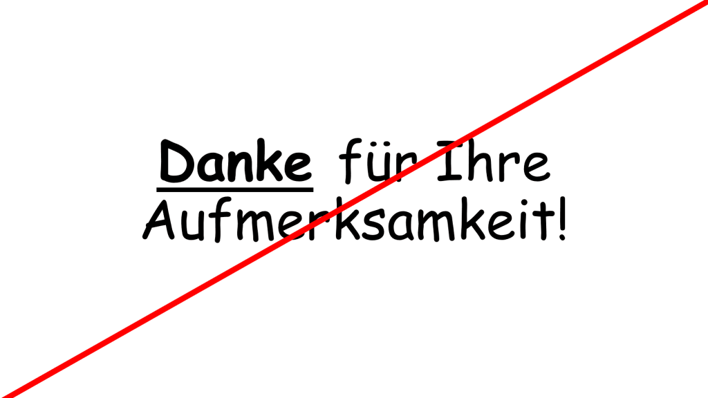 Wir empfehlen, die Sprache einfach und verständlich zu halten. Die Kombination aus Text und visuellem Material maximiert die Wirkung der Schlussfolie. Achten wir darauf, dass die Folie optisch ansprechend ist, um die Aufmerksamkeit des Publikums zu halten.
