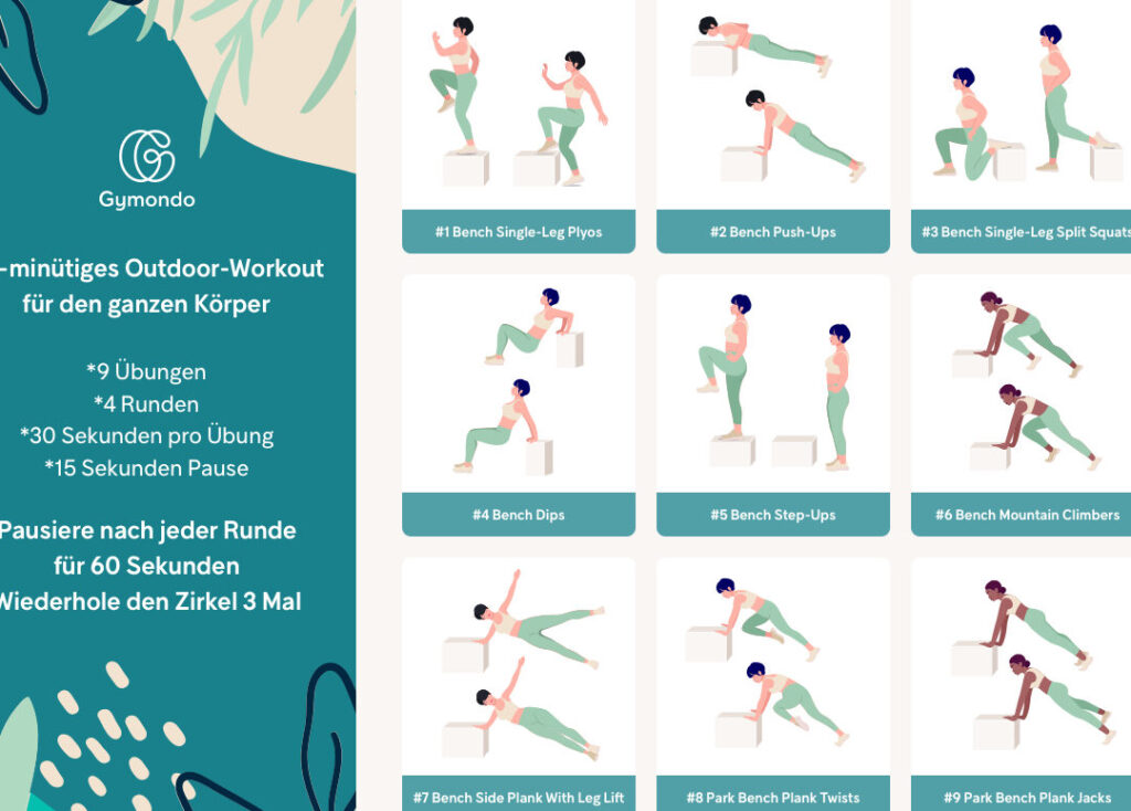 Mit diesen Übungen schaffen wir es, ein abwechslungsreiches und effektives Outdoor Workout zu gestalten, das sowohl Kraft als auch Ausdauer fördert und uns gleichzeitig mit frischer Luft versorgt!