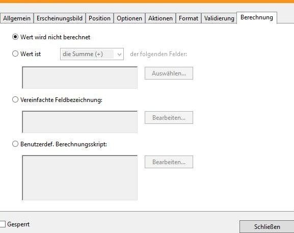 - Ein ausgeblendetes Feld berechnet und zeigt den Gesamtsummenwert an.