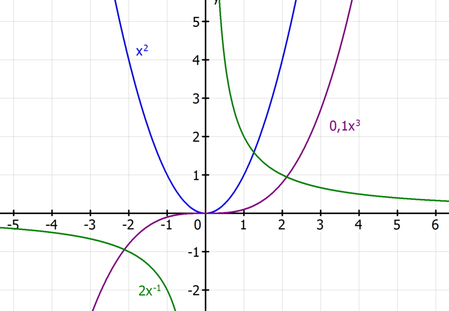 Darüber hinaus können wir das Wachstum von Potenzfunktionen analysieren: