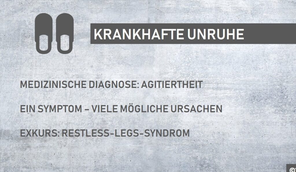 - Psychologische Faktoren: Stress, Angststörungen oder traumatische Erlebnisse spielen eine zentrale Rolle bei der Entstehung dieser Zustände. In vielen Fällen ist ein wenig bewältigbarer Stress der Auslöser für die erhöhte motorische Aktivität und innere Unruhe.