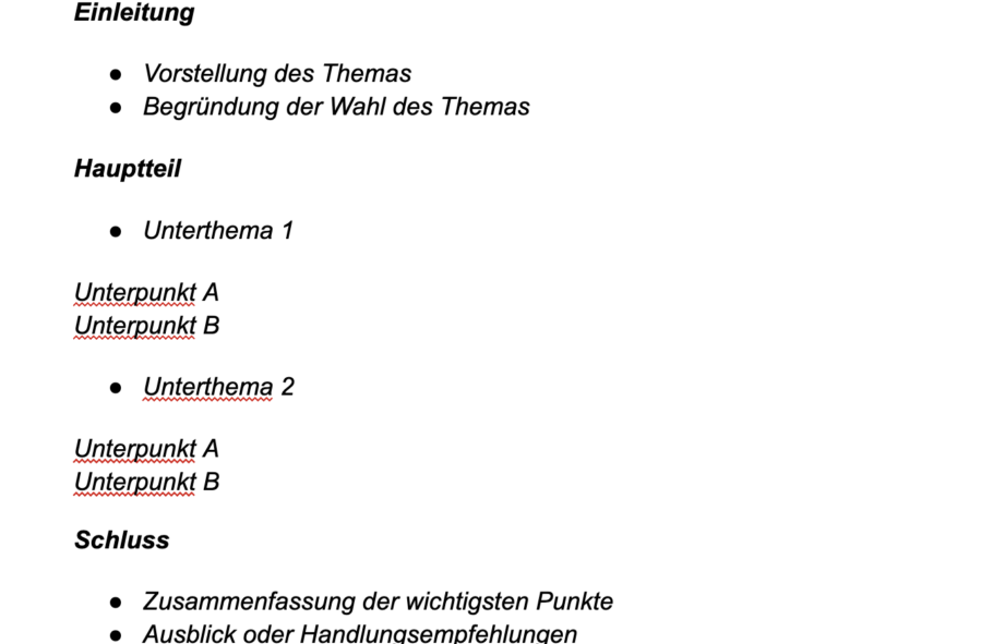 - Hauptteil: Detaillierte Ausarbeitung mit Unterpunkten