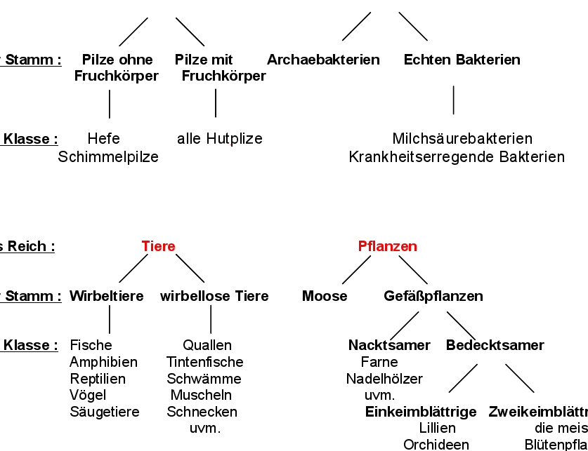 Um die Reiche der Lebewesen effektiv zu klassifizieren, verwenden wir mehrere hierarchische Kategorien: