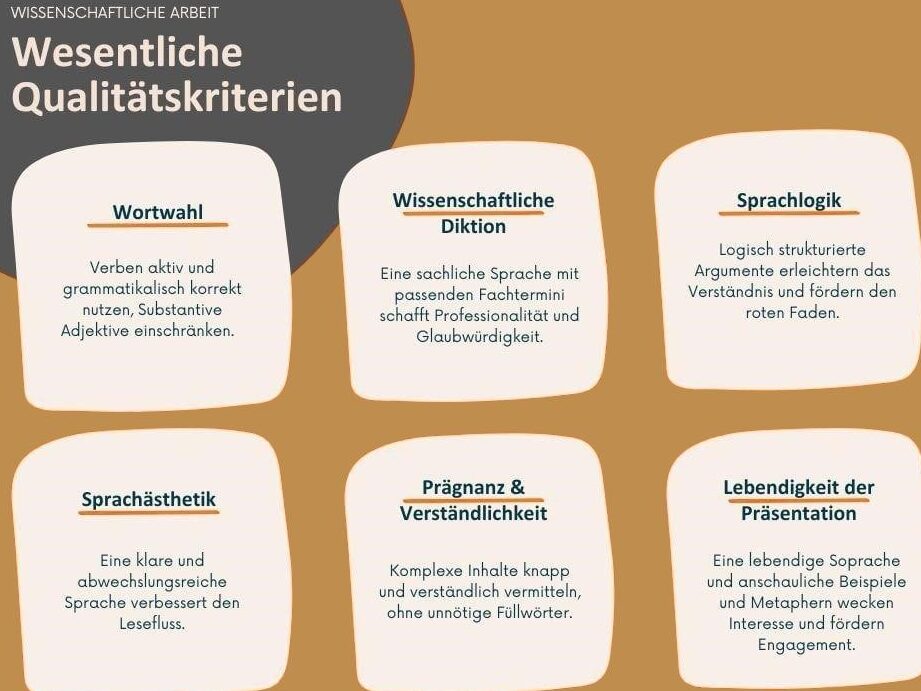 - Fachbegriffe gezielt einsetzen: Fachbegriffe sind nützlich in spezifischen Kontexten; jedoch müssen sie immer im Verhältnis zum Wissen des Publikums verwendet werden.