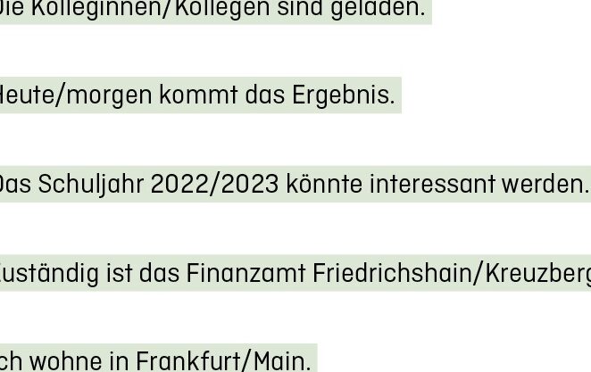 Zudem gibt es Fälle, in denen mehrere Begriffe kombiniert werden und hierbei ein übermäßiger Gebrauch des Schrägstrichs auftritt. Wenn wir beispielsweise schreiben „Kunden/Kundinnen/Besucher“, sollte hier eine klare Struktur gewahrt bleiben. Das Einfügen unnötiger Slashes kann schnell zu einem unübersichtlichen Text führen.