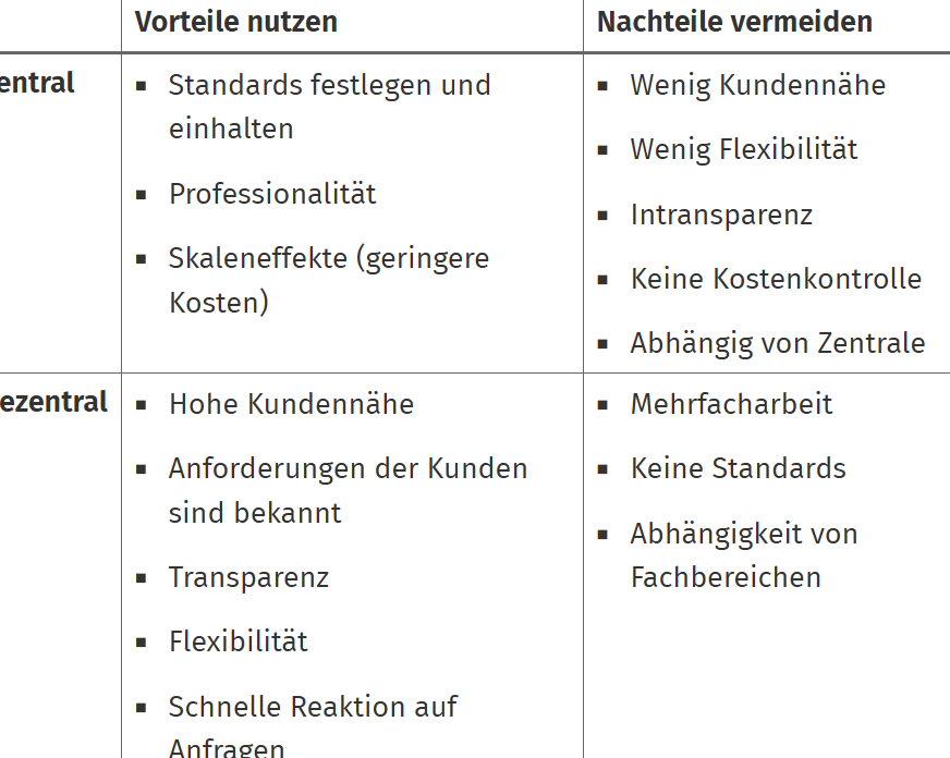 | Dezentrale Shared Services | Flexibilität durch separate Dienstleistungsangebote in verschiedenen Bereichen. |