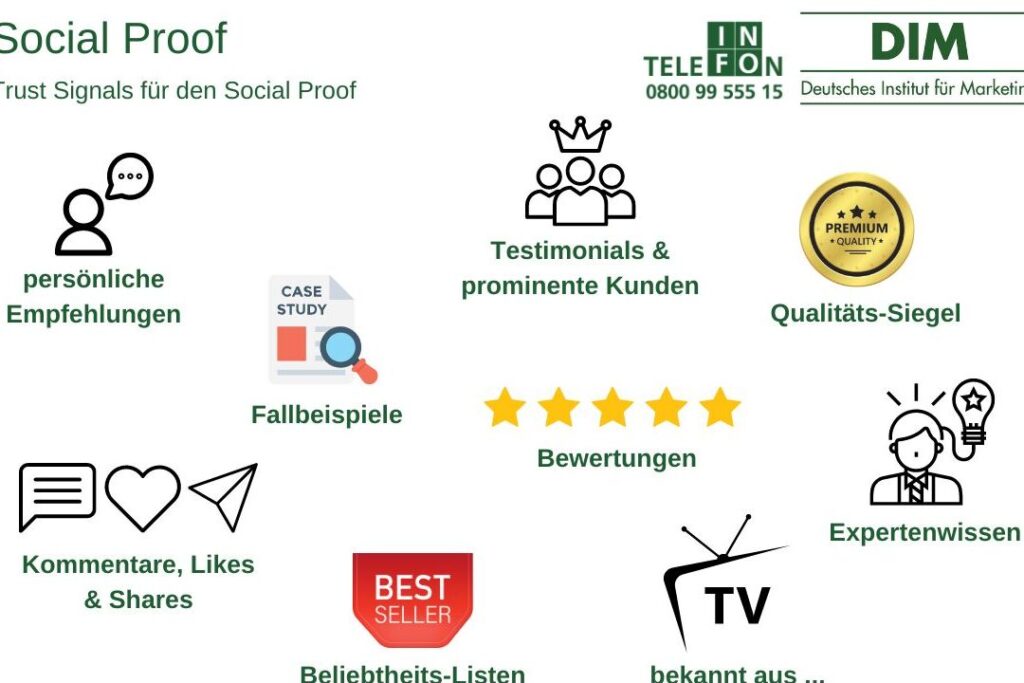 Der Begriff Social Proof bezieht sich auf die psychologische Tendenz von Menschen, das Verhalten anderer zu beobachten und dieses als Orientierungshilfe für das eigene Handeln zu nutzen. Im Marketing spielt Social Proof eine entscheidende Rolle, da er potenziellen Kunden hilft, Entscheidungen zu treffen. Wir alle fühlen uns oft unsicher bei der Wahl eines Produkts oder einer Dienstleistung. Wenn wir sehen, dass andere positive Erfahrungen gemacht haben, sind wir eher geneigt, es ebenfalls auszuprobieren.