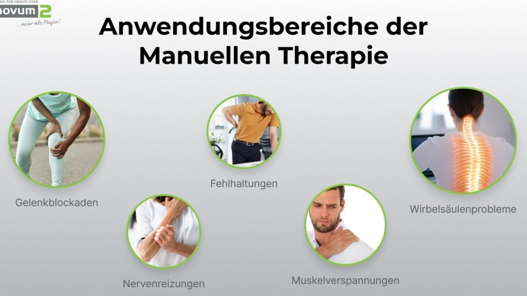 - Manuelle Therapie: Diese Technik wird eingesetzt, um Schmerzen zu lindern und die Mobilität durch gezielte Handgriffe zu verbessern.