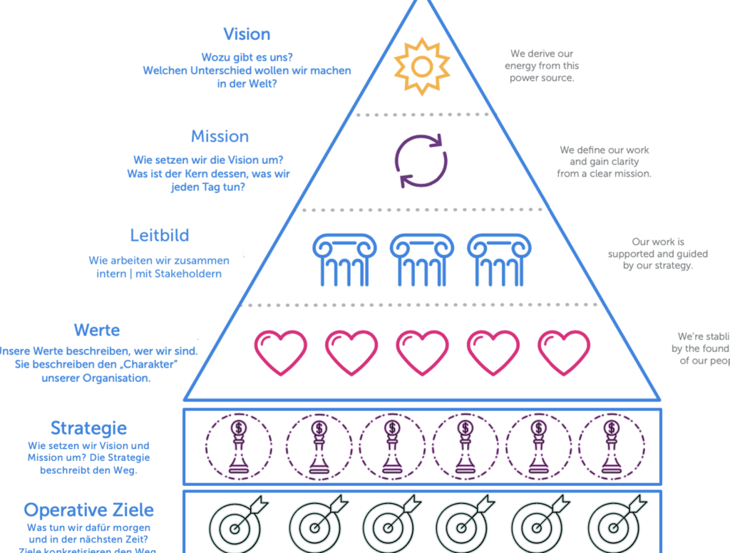 Die Vision beeinflusst maßgeblich die strategische Ausrichtung unseres Unternehmens. Sie dient als Basis für die Entwicklung von Zielen und Maßnahmen: