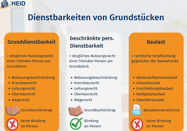 Im Gegensatz dazu steht die beschränkt persönliche Dienstbarkeit, die nur einer bestimmten Person zusteht. Hier einige wichtige Punkte: