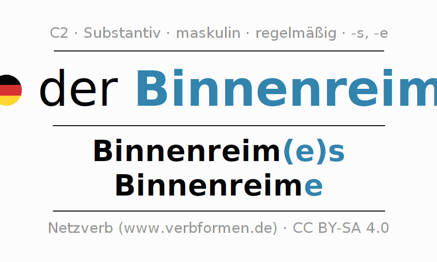 - Reiner Binnenreim: Hierbei reimen sich identische Lautfolgen exakt.