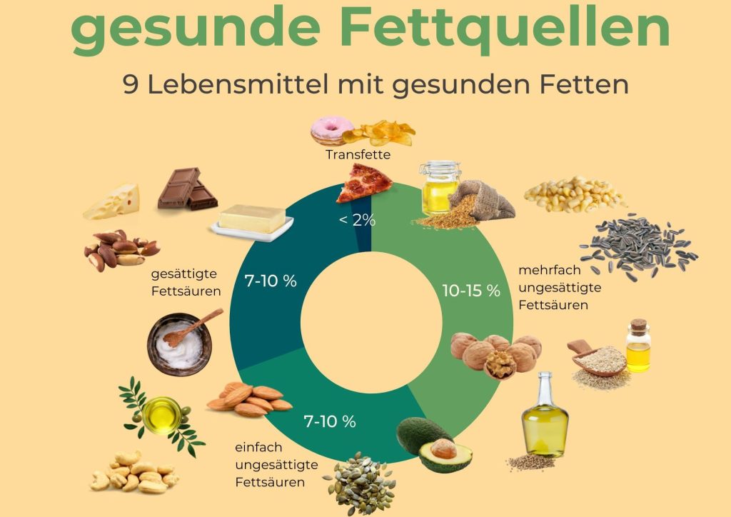 Wir sollten auf eine ausgewogene Zufuhr von Fettsäuren achten, um unsere Gesundheit zu fördern. Empfehlenswerte Nahrungsmittel mit gesunden Fettsäuren sind: