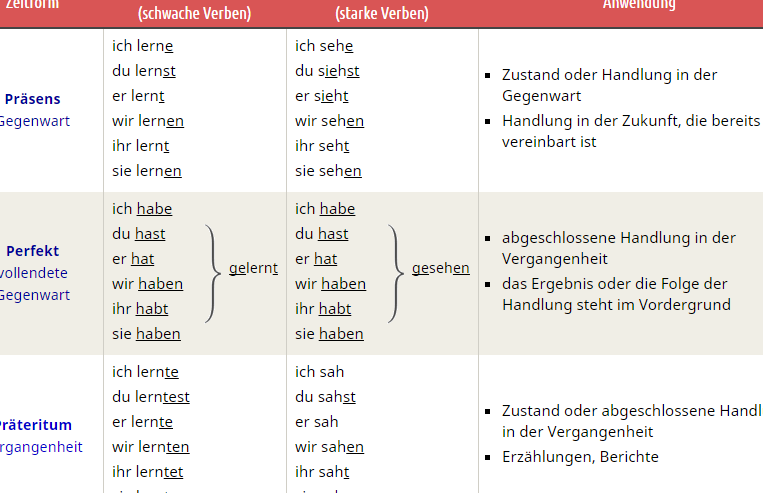 Beispiele vergleichen: Vergleichen Sie ähnliche Verben miteinander; oft gibt es Muster innerhalb einer Gruppe von verwandten Verben.